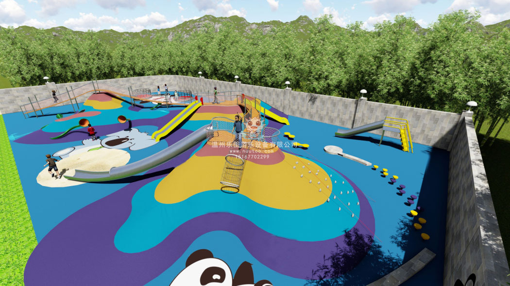 在充分考慮到走、跑、跳、平衡、投、攀、爬、鉆等各種肢體鍛煉,開發(fā)幼兒的體智能,在一片不具備任何功能的草地上,搭建起一個33米長的平臺結構:蜿蜒的結構上升、下降、回旋,獨特的形狀反映出內部的空間,精妙的設計給原先的區(qū)域帶來新的活力。為了保證幼兒戶外運動的多樣多彩化,Milo確定了結構的具體位置和形狀,簡潔的結構吸引著孩子在上面奔跑,攀爬和滑滑梯.因為結構在幾個位置有著相當高的上升,對于3到6歲的孩子來說就像一個富有吸引力的過山車。此外,游樂場有著很強的容納能力:在最忙碌的時候,可以容納超過一百個孩子同時在上面和周圍玩耍。陡峭的一端,平臺本身就可以作為滑梯,而另一端則轉化為一個平臺,平臺的配置3個出入口一個管狀滑梯,一個圓形爬網,一面斜坡攀巖。結構的一個拱形下面放置有一些秋千,另外一部分則被分為兩條不同高度的路徑。蜿蜒的結構從不同角度看都在不斷變化,也激發(fā)了平臺上下、內外的孩子們相互間的持續(xù)互動。
