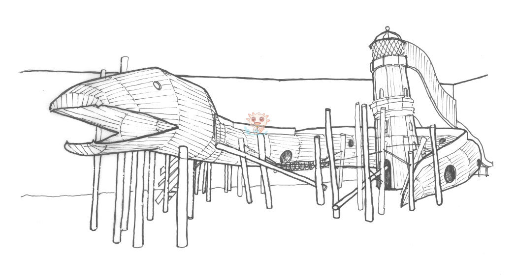 想和鯨魚來個(gè)親密接觸嗎?現(xiàn)在就到它的體內(nèi)來一探究竟吧!還可以從側(cè)面的洞口爬到它的頂部,然后坐滑梯滑下來。