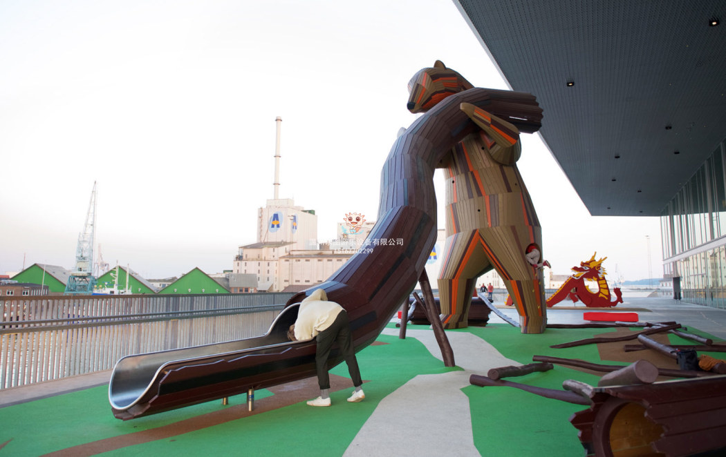 巨熊托起的樹干滑梯,還有降落在地面的巨鳥,成為了城市圖書館和服務(wù)中心外一道亮麗的風(fēng)景線。