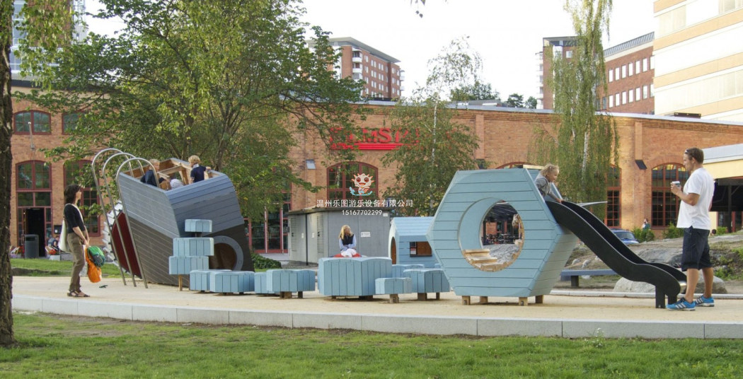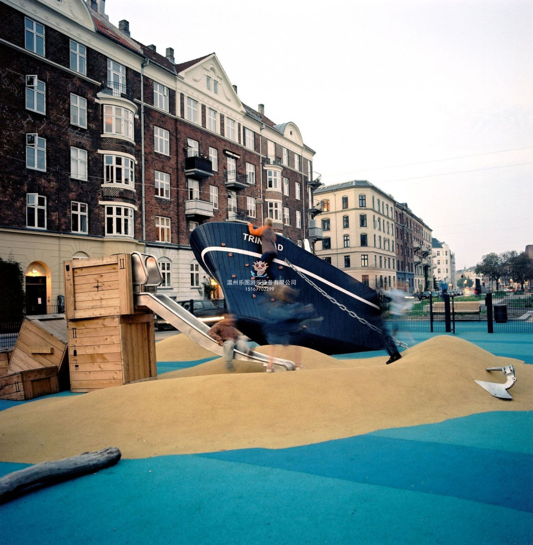 這些扭曲的小房子能帶大家回到19世紀(jì)時(shí)的Brumleby(丹麥小城),新奇的造型,是為了提醒大家這里的歷史。里面擁有攀巖、滑梯等設(shè)備,在連接處也有平衡通道可以安全通過。