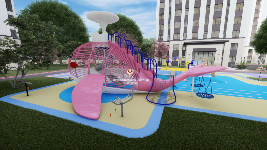 四、小區(qū)兒童游樂設(shè)備_鯨魚組合滑梯全景展示-4