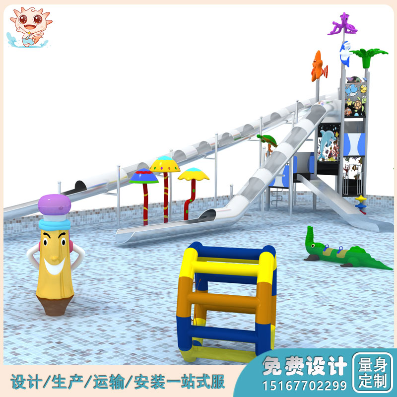 3. 功能特點(diǎn):水上樂園游樂設(shè)施滿足了小朋友們的跑、攀、爬、鉆、滑及玩等內(nèi)容,有不銹鋼滑梯、爬網(wǎng)等等功能模塊