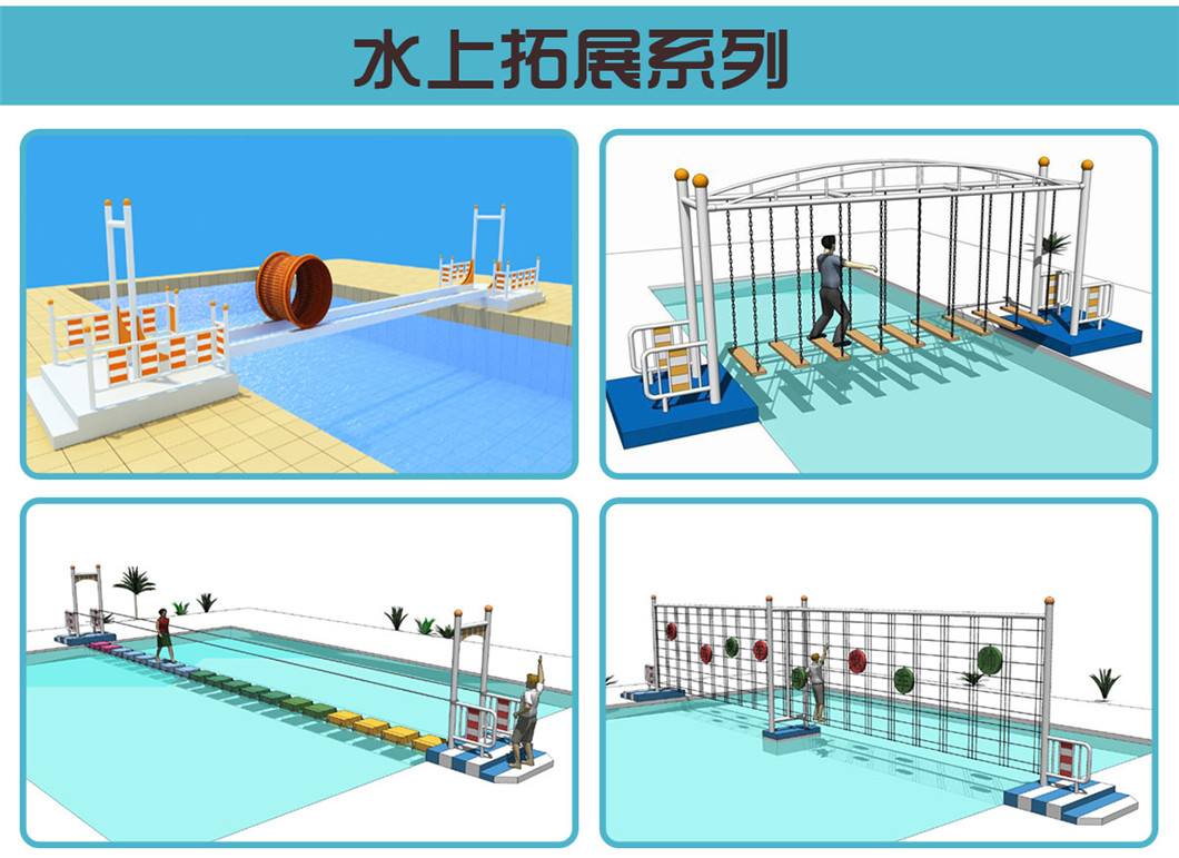 3. 功能特點(diǎn):水上游樂場(chǎng)設(shè)備滿足了小朋友們的跑、攀、爬、鉆、滑及玩等內(nèi)容,有不銹鋼滑梯、爬網(wǎng)等等功能模塊