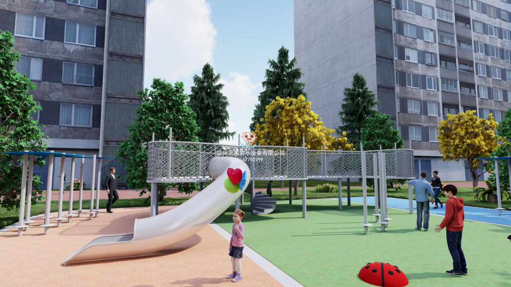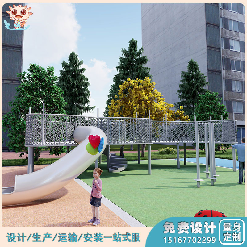 二、功能特點(diǎn):社區(qū)游樂園設(shè)備滿足幼兒園基本動(dòng)作訓(xùn)練走、跑、跳、平衡、投、攀、爬、鉆、滑及玩撒內(nèi)容,有不銹鋼滑梯、懸空鉆洞、S型滑梯、玩撒平臺(tái)、攀爬繩網(wǎng)等等功能模塊