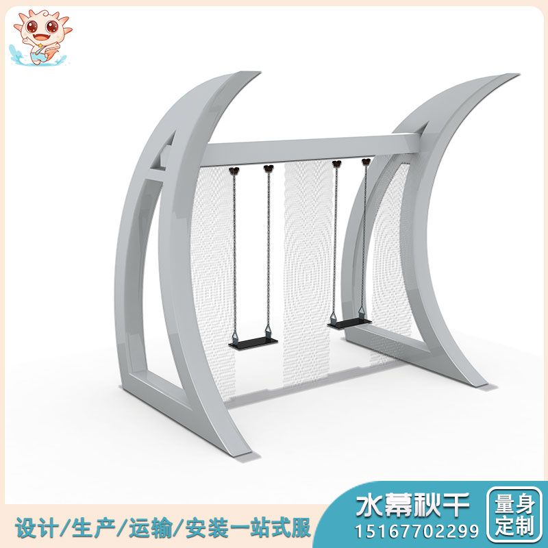 2、室外樂園可設(shè)單、雙或多人秋千,通過圓形或 S形等異形布置,營造豐富的秋千視野,這樣可以帶給游人更多的秋千氛圍感,在我們的建設(shè)中,有更多采用此種布置的秋千樂園,獲得明顯的好評,受到廣大游人群體的喜愛,還有一些整木秋千,被賦予一定的團隊拓展功能。