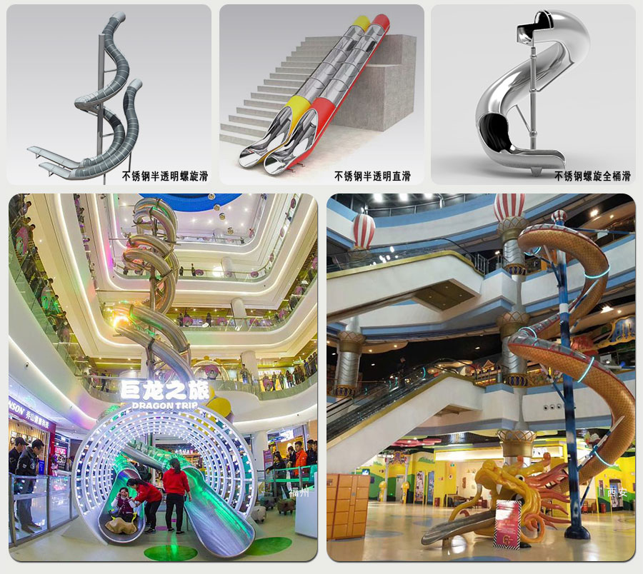 景觀游樂不銹鋼滑梯按形狀可以分為:平底直滑梯、平底彎滑梯、半圓直滑梯、半圓彎滑梯、全圓直滑梯、全圓彎滑梯、全圓螺旋滑梯、半透明直滑梯、半透明彎滑梯、半透明螺旋滑梯