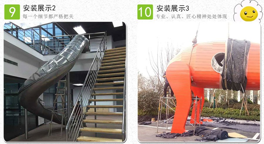 配套不銹鋼滑梯按形狀可以分為:平底直滑梯、平底彎滑梯、半圓直滑梯、半圓彎滑梯、全圓直滑梯、全圓彎滑梯、全圓螺旋滑梯、半透明直滑梯、半透明彎滑梯、半透明螺旋滑梯