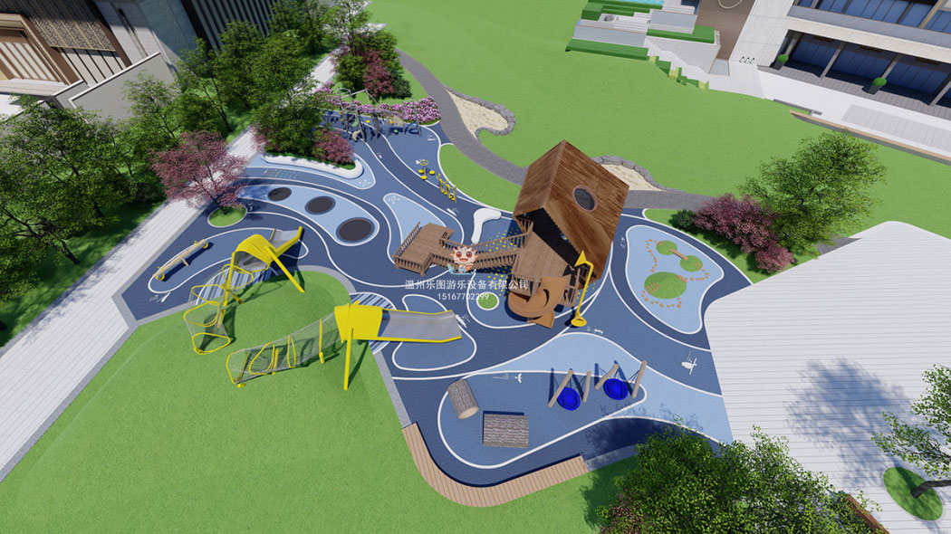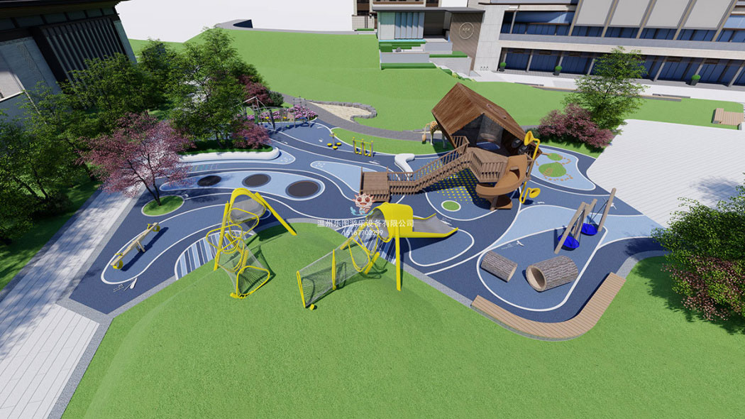 融創(chuàng)九宸府項目位于貴陽國家級臨空經(jīng)濟區(qū)—雙龍航空港核心區(qū),片區(qū)為貴陽生態(tài)高端居住區(qū),改善居住聚集區(qū)。 其中九宸府樹屋游樂場以中魂西技、古意今達的造園手法,兒童游樂設(shè)施是根據(jù)小朋友的興趣及愛好精心設(shè)計的,集健身和娛樂為一體的室內(nèi)兒童游樂設(shè)施場地,它可以說是離我們生活最為接近的一種室內(nèi)兒童游樂設(shè)施了, 在原始森林的深處,高聳的雪松似乎劃破了極光的裙子。一個柵格式兒童樹屋應(yīng)景而生;走在這片不受工業(yè)干擾的凈土上,不經(jīng)意間抬起頭,樹屋散落在樹干之間,就像一個鳥巢,與大自然融為一體。 旁邊的山坡微地形,一個獨特三角滑梯,小小朋友歡樂天地 一套青少年體能拓展,增加了社區(qū)的社交體驗,讓中小學(xué)孩子同時也能感受小區(qū)游樂場的樂趣