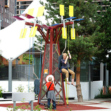 從1912年月亮公園矗立在悉尼歌劇院對岸,1955年7月迪士尼樂園開園,到1968年丹麥比隆建設(shè)首家樂高主題公園。至今,兒童主題體驗項目以80年的歷史,成為兒童產(chǎn)業(yè)運營的重點。在傳統(tǒng)兒童教育學理論中,“寓教于樂”是常見的教育方式之一。而在幼兒教育解讀體系中,科教、健康、藝術(shù)、語言、社交均是不可或缺的要素,因此,激發(fā)探究興趣,發(fā)展健康身心,培養(yǎng)藝術(shù)種子,創(chuàng)設(shè)語言環(huán)境,構(gòu)建社交環(huán)境成為當前幼兒教育重要的五大核心。 研學樂園基于游戲中學習的理念,把力學、光學、聲學等物理實驗通過游戲游樂化,整合成研學基地 其中自然能源游樂場是研學基地的其中一款清潔能源轉(zhuǎn)換游樂場,是通過將游樂場設(shè)計與可再生能源發(fā)電技術(shù)相結(jié)合,動能被游樂場設(shè)備使用,這樣就可以將其轉(zhuǎn)化為電能。在自然能源游樂場,有8個風箏,包括本杰明富蘭克林(BenjaminFrankin)的風箏和一個水車曉蹺板。有一些與可再生能源有關(guān)的項目,孩子們可以通過這些項目了解能源和環(huán)境,此處產(chǎn)生的電能可在綜合大樓中再利用,以保護環(huán)境。它是面向未來的環(huán)保游樂場,因此獲得了極高的評價。